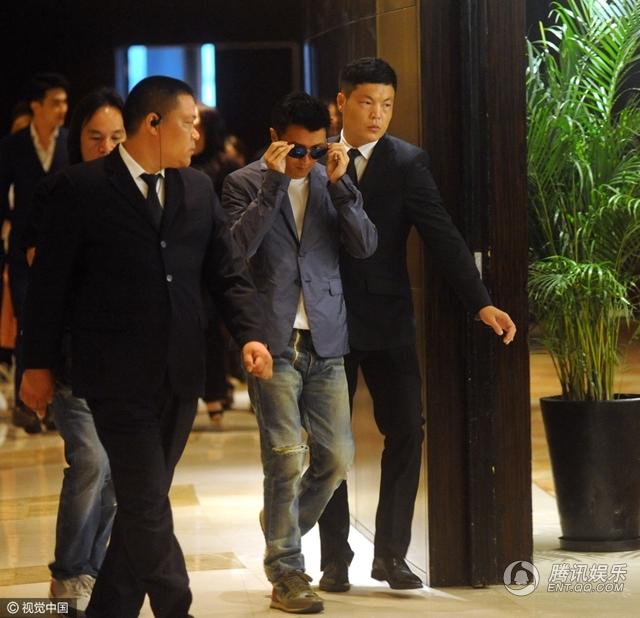 谢霆锋一路保镖护驾。